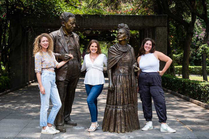 Walking around Downtown Coyoacan. Pose in front of landmarks such as the San Juan Bautista Church, Frida Kahlo Park, and Plaza de la Conchita.