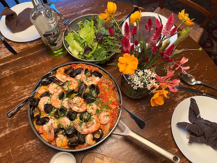 This is a comforting dinner cooked fresh. Think: a slow braise, vibrant vegetable stew, or beautifully spiced dish served with fresh bread or a simple side. This package includes planning, cooking, service, and clean-up. There is a minimum fee of $900 for the experience to run.