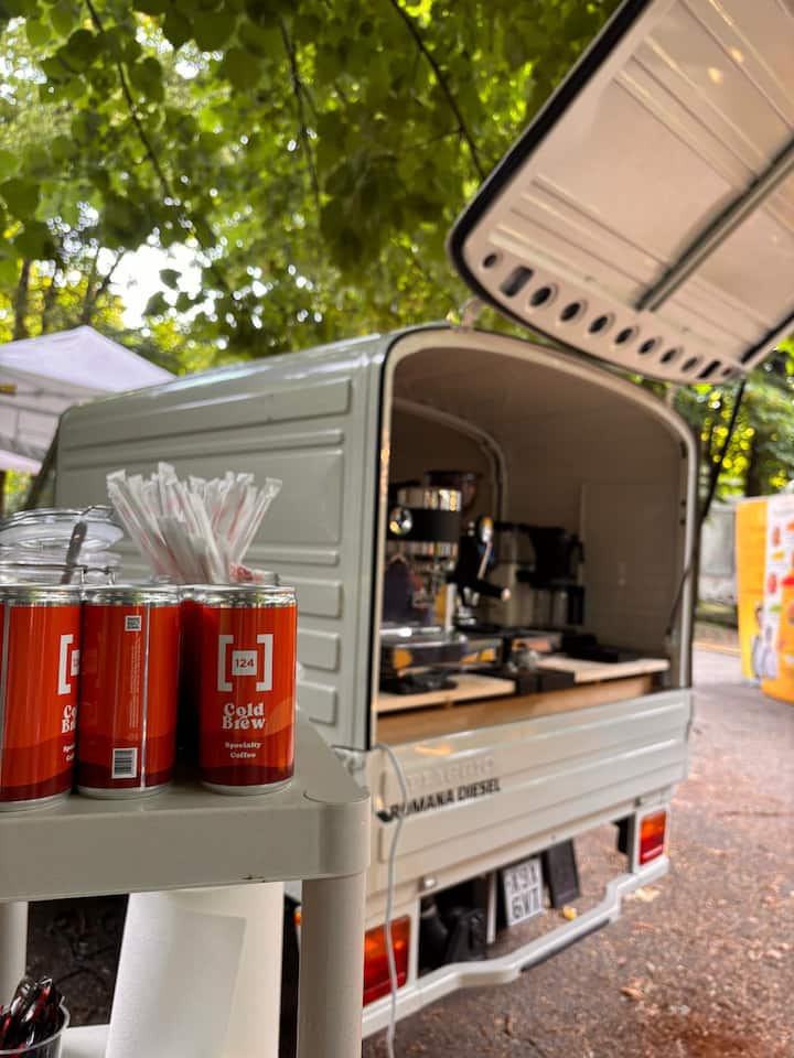 This formula provides for the organization of a van-bar, ideal for boutiques, fairs, festivals, business meetings or other outdoor events. The menu includes coffee and milk specialties, as well as cold brew and other beverages.