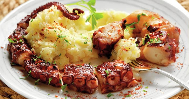 ROASTED SEAFOOD WITH SALADS AND BUTTER AND ROSEMARY BAKED POTATOES