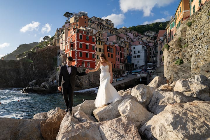1.5-hour couple photo session in Cinque Terre, perfect for couples, engagements, or intimate wedding moments. Set against colorful villages and coastal views, the session is designed to capture your connection in a natural style, with a mix of candid and gently guided shots. You will receive at least 40 edited image. Your final gallery is delivered digitally within 30 days. Travel within the area is included. Please note: any location fees, permits, meals, or tickets are not included.