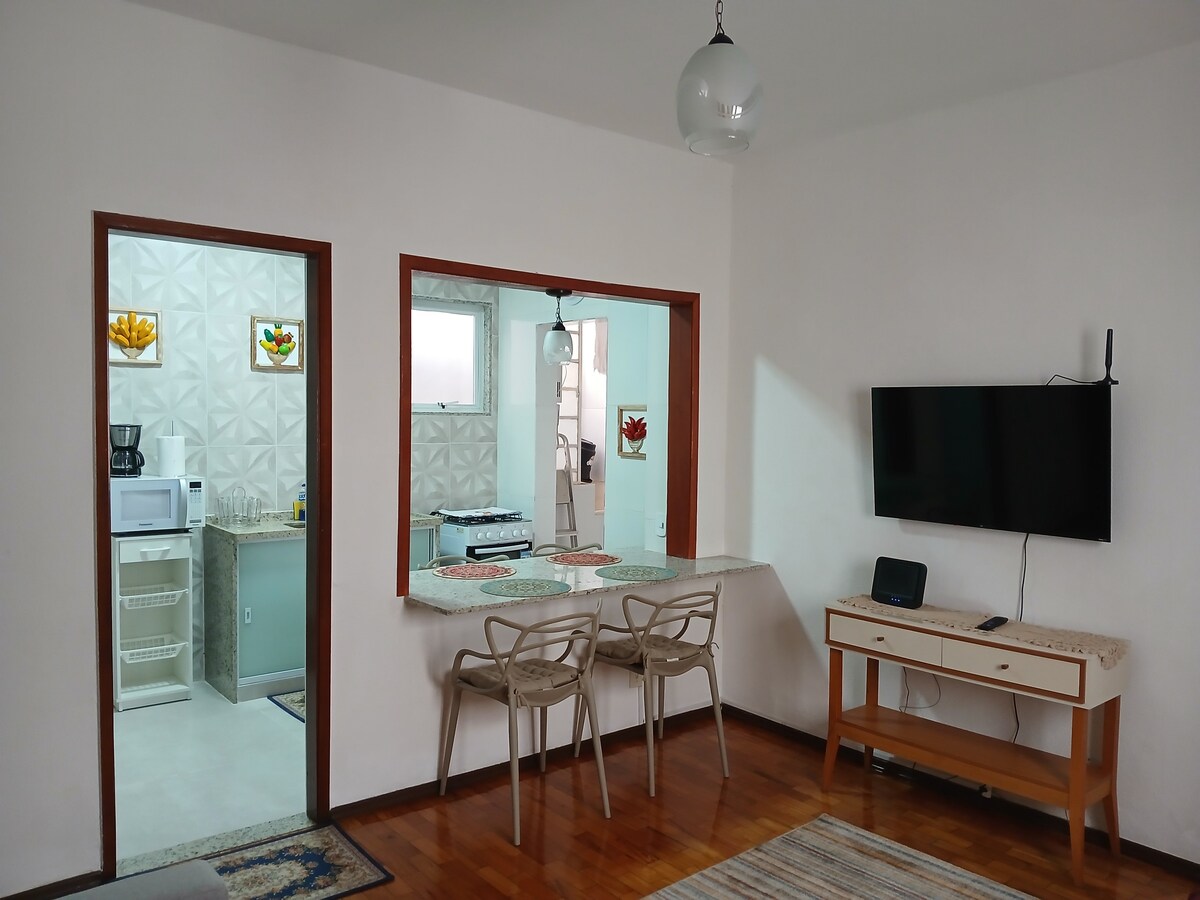 Enjoy an amazing experience at this centrally-located place. Have the convenience of having all kinds of shops you need just a few steps from home. The apartment is a 2-minute walk to Teresópolis Shopping, the city's main shopping mall, and the Walk of Fame. The apartment is ready to welcome you and your family with all the comfort, security and coziness. Every detail was designed for this. We have in the apartment: - 600 MEGA Wi-Fi - 32" Smart TV - Bed and bath linens included - Compact kitchen