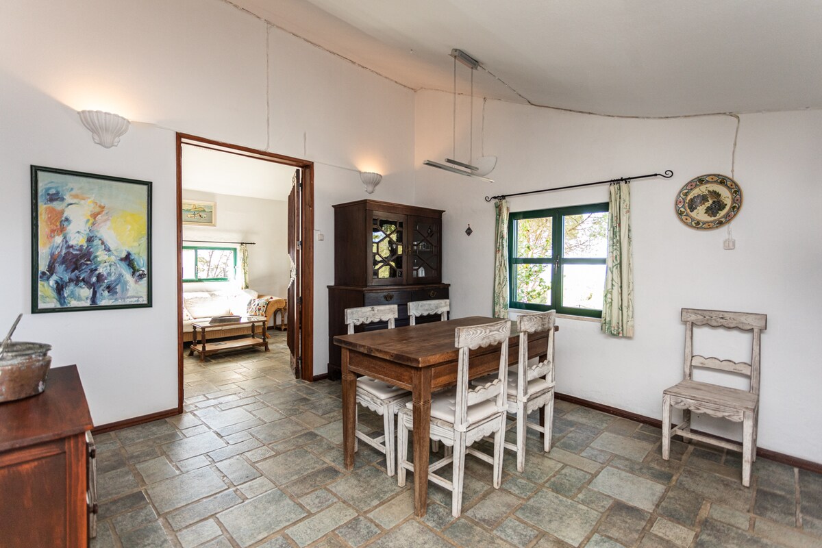 In the Serra de São Luís, located in the Natural Park with a wonderful view and peaceful atmosphere, the house is located on a 1-hectare farm. 3 km from Setúbal and 10 minutes from the beach. 45 m from Lisbon, 10 m from Azeitão and 25 m from Sesimbra. Bus 200 meters away. Bike friendly Several cultural and historical points, interesting gastronomy in the area. Possibility to rent a boat during the stay (private) and enjoy the outdoor activities services promoted by the host.