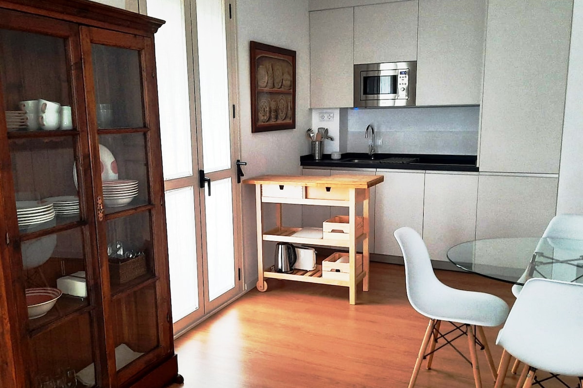 The Eva Recommends Soho Alameda apartments offer free Wi-Fi and hot/cold air conditioning, TV, kitchen with ceramic hob, microwave, capsule coffee maker, toaster, kettle, hairdryer, iron, bed linen and towels, and complete kitchenware. kitchen. Modern apartment with 2 bedrooms, one with a double bed and the other with a bunk bed, and a bathroom with a shower in a completely renovated house with 6 apartments and an elevator.