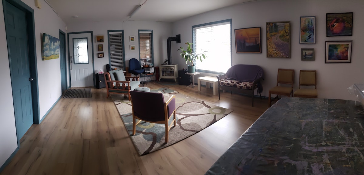 Forget your worries in this spacious and serene space. Only three kms. from downtown Smithers, hidden from sight on Hudson Bay Mountain Road. A bird watchers haven, and ample wildlife. We are on the way to the ski hill, close to mountain bike trails, can go hiking right from the back door. If you a fisherman, we have lots of room to turn your boat around. Do you love art, ask Sherry your host if you could get an art lesson or visit her at Nielsen Gallery (nielsenart .ca).