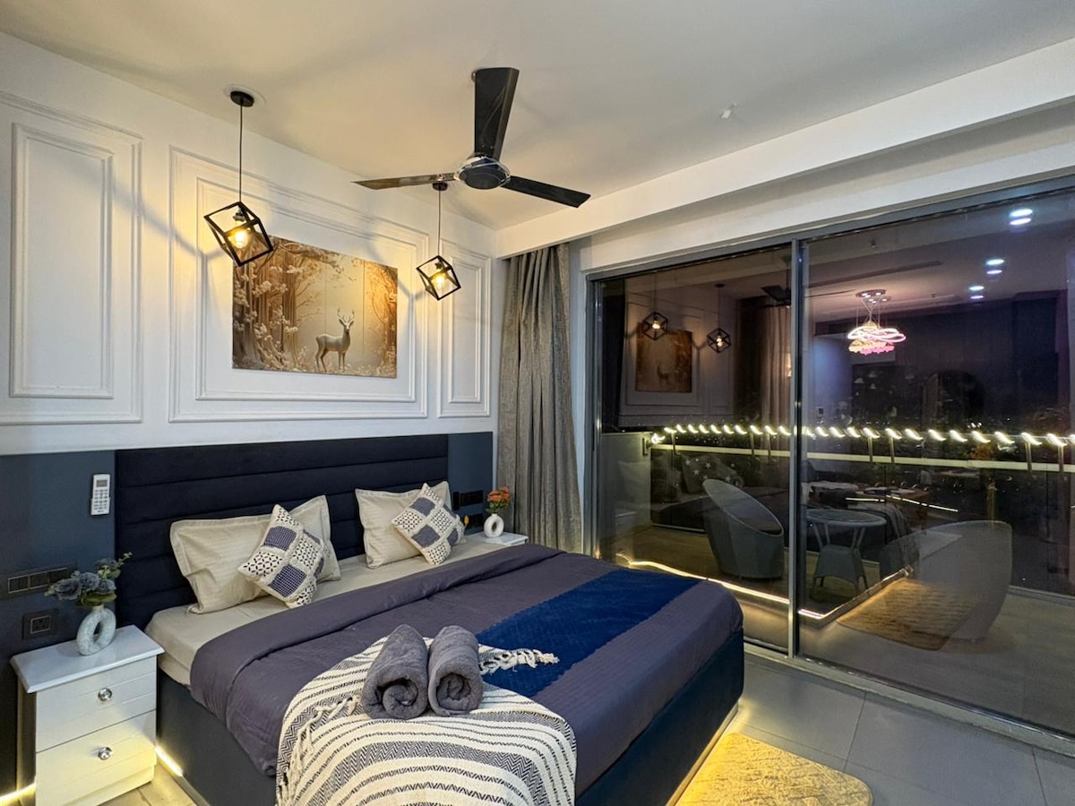 41st-Floor Ultra-Luxury Apartment | Yamuna River View ⢠Elevated high-rise living in the tallest tower of Delhi NCR ⢠Panoramic Yamuna river views from a premium floor ⢠200 Mbps high-speed Wi-Fi â ideal for remote work & long stays ⢠Seamless food delivery (Swiggy, Zomato & more) ⢠Easy cab access and close to key city attractions ⢠In-complex conveniences: grocery store, salon, cafĂŠs & restaurants ⢠Parking available outside the complex