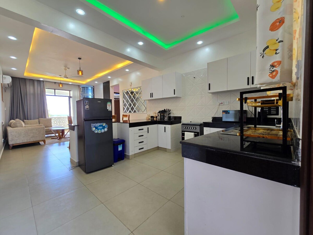 Enjoy high-speed WiFi (50 Mbps), perfect for remote work and video calls Enjoy comfort and convenience in this Nyali coastal 1 bedroom apartment, just few minutes from beaches, shopping malls and top restaurants. Perfect for solo travelers, business guests' and couples. Spacious, air-conditioned bedroom with a comfy king-size bed and plenty of storage Bright living room area with a tasteful decor and an android TV Fully equipped kitchen with cooking essentials 24/7 security and free parking