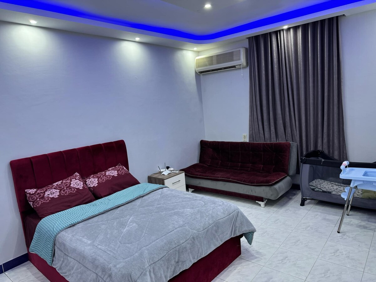 Kick back and relax in this coastal-style designed space! This stylish unit is fully quipped with everything you need for a perfect vacation and offers an adjacent private yard with a dining and smoking area. The space is located in the heart of Hadaba and is just a 2-minute walk from the sea, with plenty of restaurants, cafes, and 24-hour public and private transportation options nearby. You can also enjoy additional services such as a choice of breakfast, cleaning services, and bicycle rent.