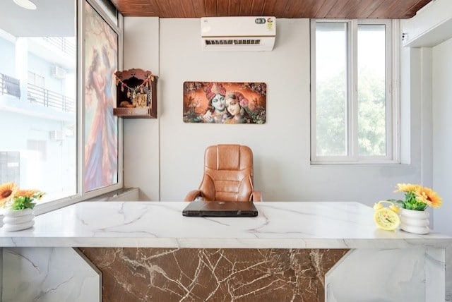 Forget your worries in this spaciThis is a spacious, elegantly decorated room on the third floor of a quiet building in Jaipur. The space is fully private, featuring a sunlit bedroom, attached balcony, premium mattress, air conditioning, OTT-enabled Smart TV, and a kitchen. Wake up to greenery, enjoy your morning tea in peace, and unwind after your Jaipur adventures in absolute comfort.ous and serene space.