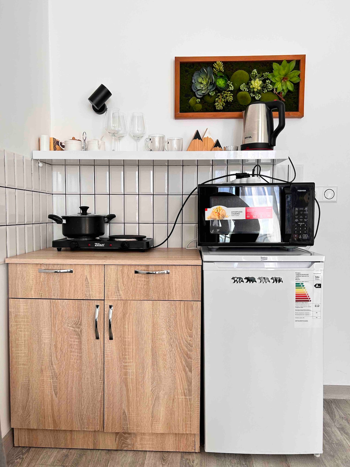 For rent Bakuriani MIX hotel / Bakuriani MIX apartment for 2+2 guests in Bakuriani near Kokhtagora. in the best place, the so-called "25" - 300 meters from the skating rink. French balcony with beautiful forest and mountain views. In the apartment you will find, first of all, cleanliness and all the necessary things and equipment to feel comfortable and calm. The room has: 2-person bed, additional 2-person sofa bed, kitchen corner, bathroom.