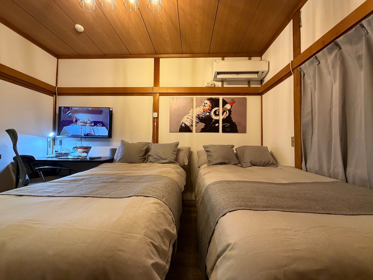 Oyado Tamaya is a whole house rental in a quiet residential neighborhood near Nagaoka University of Technology. Built in 1981, it is a small 56 m² inn, but it has been renovated in a retro and pop Japanese style, and there are retro game machines, mahjong, kotatsu, etc. Enjoy a unique and retro time away from the hustle and bustle. The Shinano River flows near the inn, so you can enjoy riverside running, and in summer you can enjoy the spectacular Nagaoka Fireworks, one of Japan's three largest fireworks displays. Tamaya is located in the heart of Nagaoka City, with malls, art museums, botanical parks, breweries, famous ramen shops, major gyms, and more, making it a great place to visit with your family or by yourself. It is also close to the highway IC, and there is a long-term discount, making it an ideal base for a trip to Niigata. In addition, the parking lot (1 large, 1 medium) has bicycle parking facilities and security surveillance cameras. ✩ We also rent out toys, chairs, toilet seats, etc. for small children! Please let us know when you book ♩ [Precautions when booking] For reservations with children, the price is set by the number of people, just like the adult price, so please book all adults at the time of booking. Please message me the number of children.