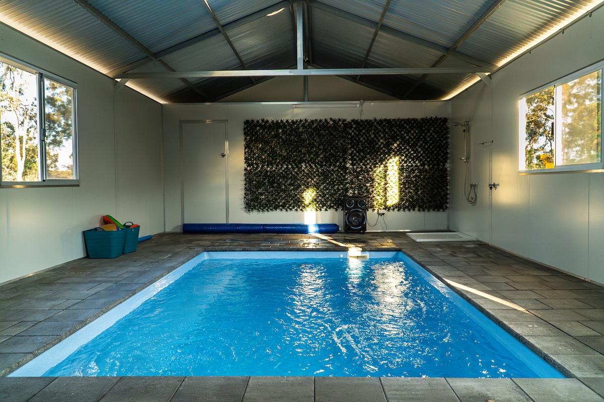 Welcome to our picturesque farmhouse retreat, just an hour north of Perth! Nestled amidst rolling hills and overlooking a serene winter creek, this charming property offers the perfect blend of tranquility and outdoor leisure. Our farmhouse can comfortably accommodate families and groups of up to 10 - 12 guests. Complete with a pool and tennis court to enjoy, or wander through the olive grove and citrus orchard, where you can pick fresh fruit to enjoy during your stay.