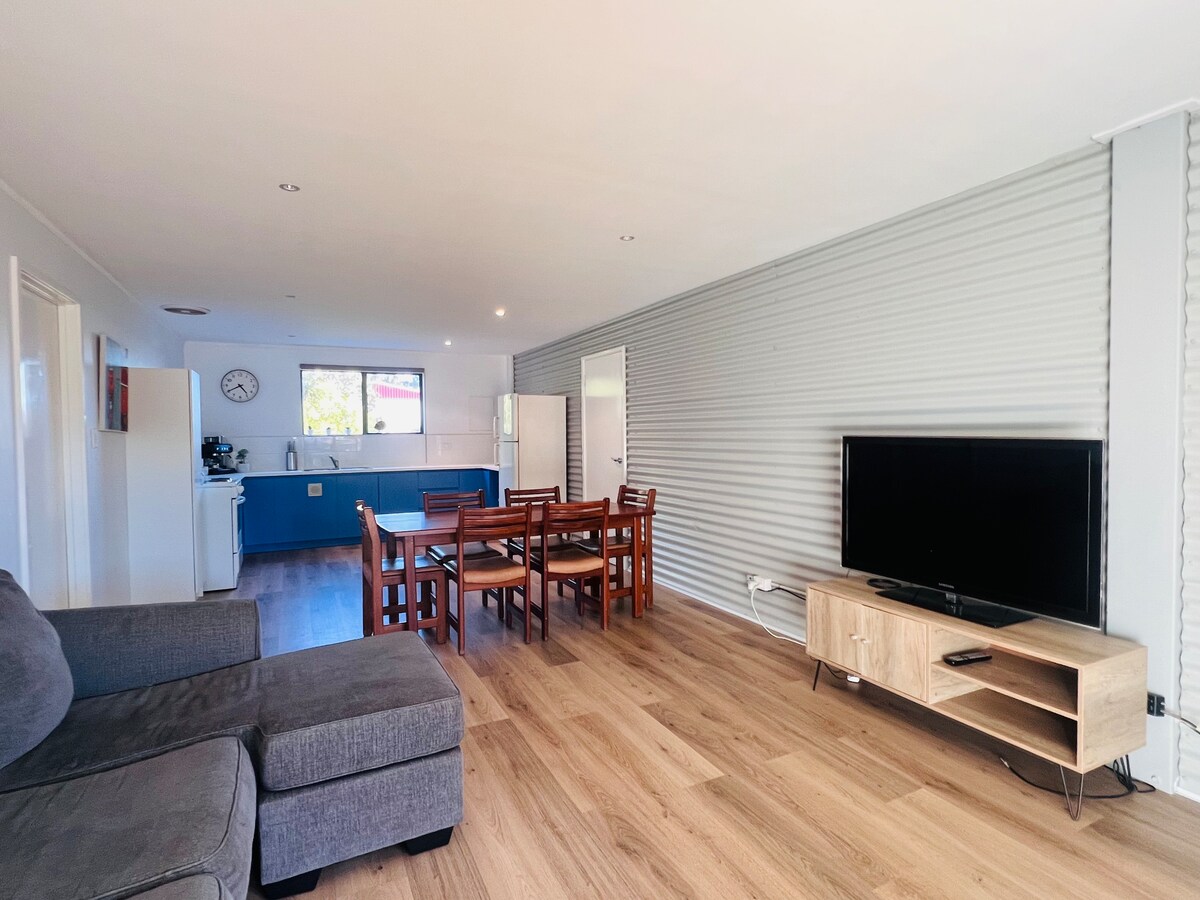 Get away from it all and relax in this unique 2-container self-contained home in a quiet, rural location within easy reach of Dongara & Port Denison shops, restaurants, cafes and beaches (5 mins car or 30 mins walk). Hear the birds at sunrise, the waves at night (with a W/SW wind) and see the stars after sundown. Stroll in our 3-acre paddock and enjoy sitting under the trees. Walk across our sand hills to Kingy Bay. Loads of parking and well-behaved dogs welcome. Breakfast and cleaning included.