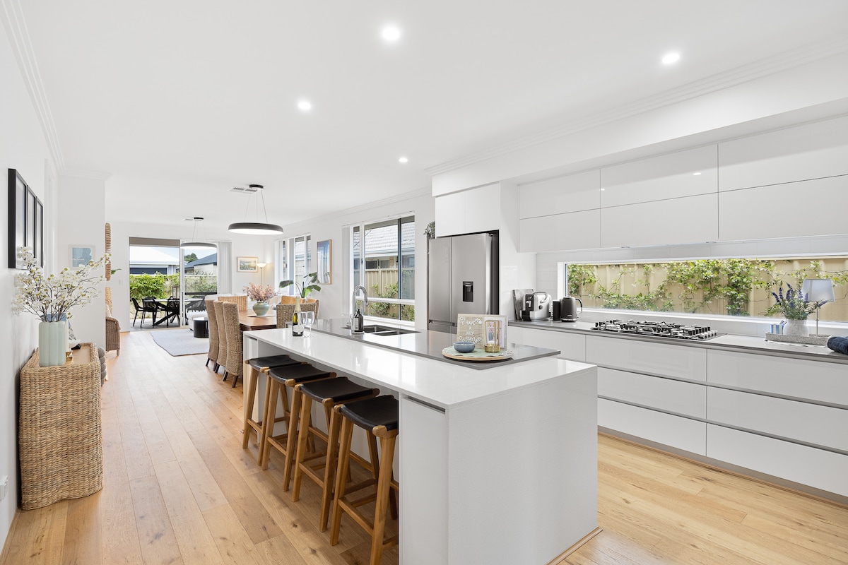 This well-appointed, newly carpeted family sized home has 4 bedrooms & can sleep 9. On a quiet cove, the canals are right on your doorstep. Kids can paddle, play and fish all day long. Surrounded by wildlife such as ducks, swans, pelicans & the occasional dolphins frolicking off your backyard, this is a truly unique & relaxing location. You’ll find all the comforts of home, with memories waiting to be made with your family & friends. 2 lounge rooms with 65 and 55 inch TVs. Linen provided
