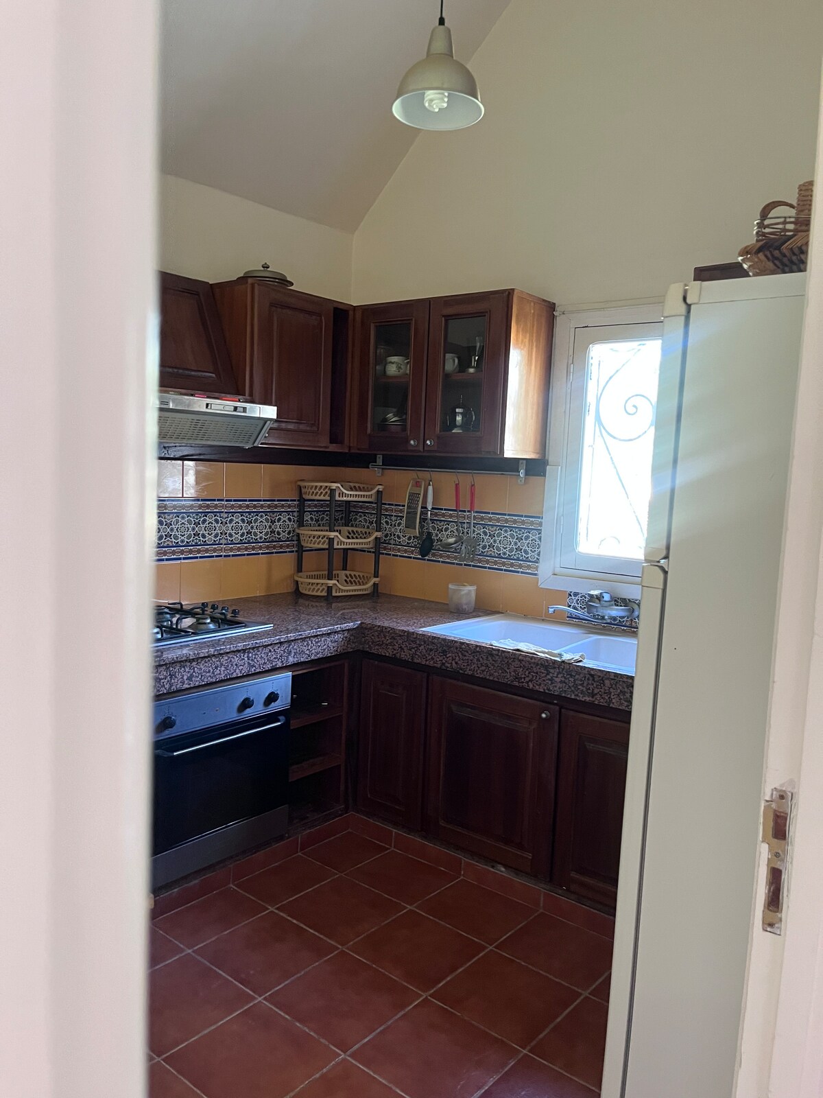 Nichée au cœur d’une campagne paisible, à seulement 14 km du Marjane de Berkane, cette villa avec piscine privée vous promet une expérience unique où se conjuguent tranquillité, nature et confort. Sa piscine privée, à l’abri des regards, constitue un véritable havre de détente pour se rafraîchir en toute intimité. La villa dispose de deux chambres dotées d’armoires spacieuses, d’une salle de bain moderne et d’une cuisine entièrement équipée.