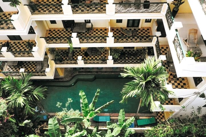 Experience the timeless elegance of our French Colonial-inspired villa, nestled amidst lush green gardens and featuring classic design elements. Each villa room offers a private retreat, while our shared seating areas invite relaxation amidst nature. Ideally situated just steps away from the city center and Pub Street, you'll enjoy access to our refreshing pool, daily breakfast, and turndown service. Discover the perfect blend of historic charm and modern comfort at our unique sanctuary.