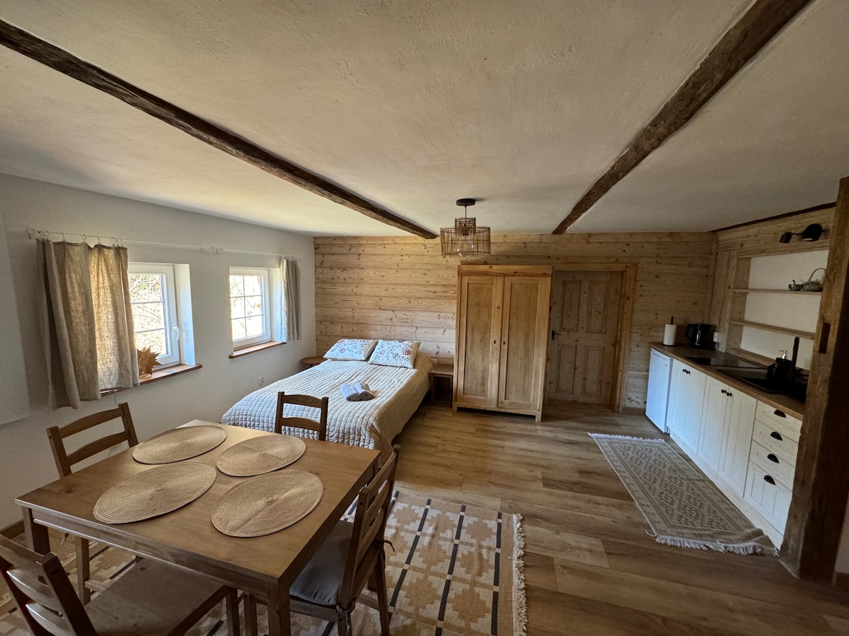 ♥Pokud máte dotazy nebo speciální požadavky, napište nám♥ Užijte si klidný pobyt v útulném apartmánu, který se nachází jen kousek od malebného lesa. Moderně zařízený apartmán je ideální pro milovníky přírody, turistiky a relaxace. Apartmán nabízí manželskou postel, dvě jednolůžka a rozkládací pohovku, plně vybavenou kuchyň, WiFi a bezplatné parkování.