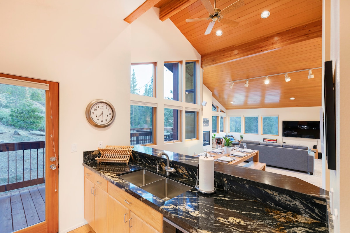 Your adventure awaits. As you arrive, relax in your stunning luxury chalet. Your perfect Yosemite basecamp, with easy access to hiking, fishing and all the outdoor adventures you can imagine. Sip your morning coffee or tea on the patio as you absorb the amazing views. Sit by the cozy fire as you watch the winter snowfall. Make your favorite dish in the fully equipped Chefs kitchen. Kids can enjoy a movie in the theater while you have a glass of wine and stargaze. Message for specials or BOOK NOW