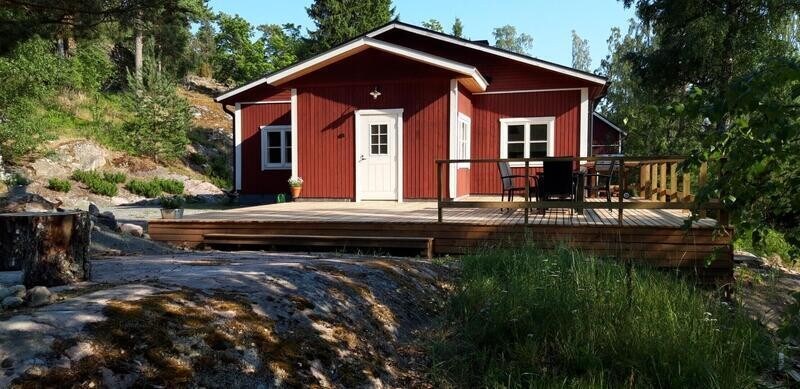 A relatively new sauna cottage in the heart of peaceful nature, offering modern comforts and a seaside location. Private pier and sandy beach. Double bed for two people in a separate building within the yard. Dining table located on both an uncovered and a glazed terrace, no indoor dining area. Gas grill available. Hot tub available for an additional €180 per stay Stand-up paddleboard available for an additional €50 per stay Rowing boat available for an additional €80 per stay