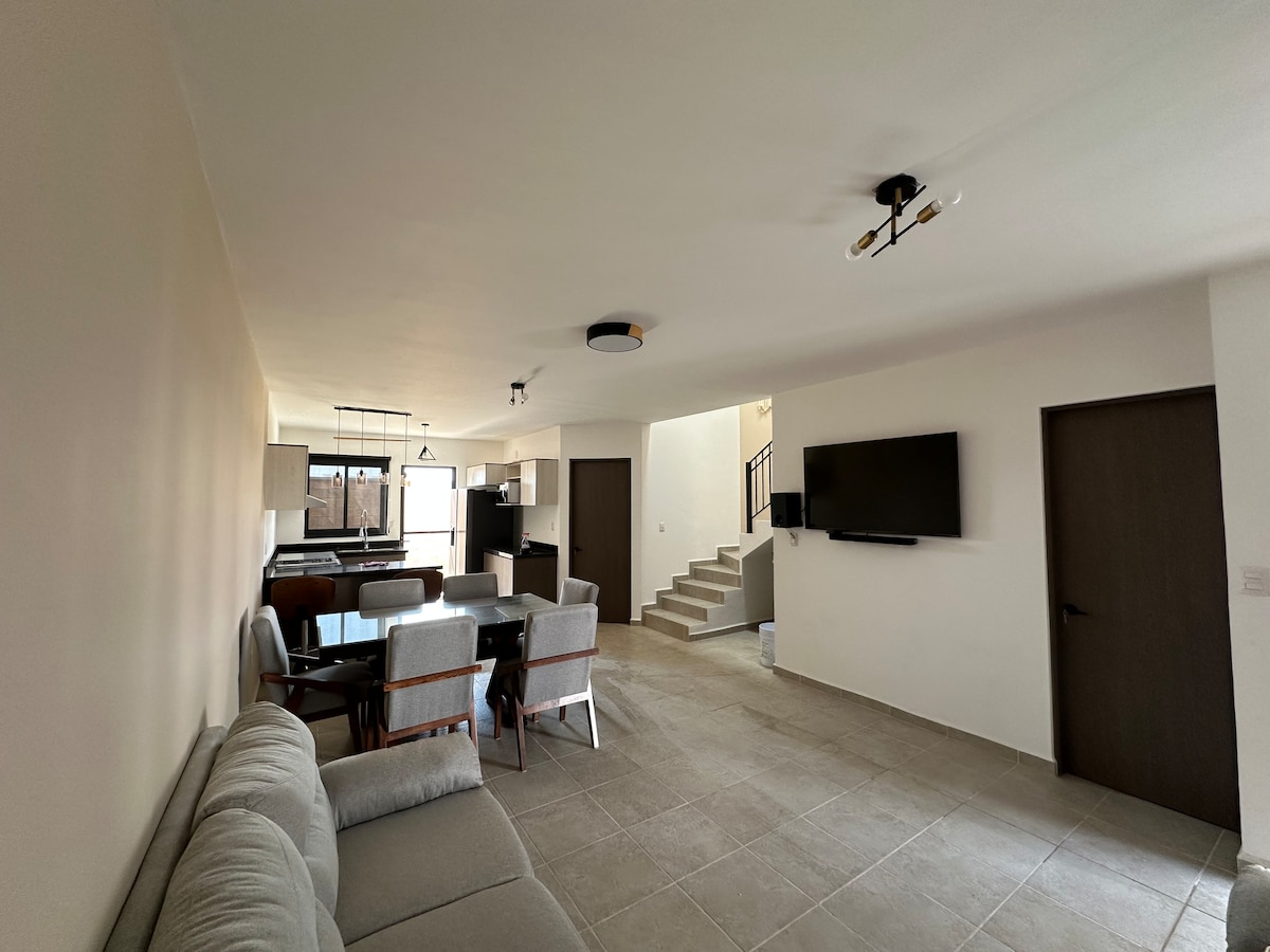 Fully equipped house, in private and quiet cluster. 24 hour surveillance. With automatic gate, (4) rooms, of which (1) is on the ground floor. It has (3) full bathrooms, (4) SmartTv and everything you will need. Access to 2 rooms -> Reservation of 1-4 people (Not shared with other guests) 3 rooms -> 5-6 (Not shared) 4 rooms -> 7-8 20m from a park with fire grill and children's games. At 50m from another with outdoor gym equipment (Within the cluster).