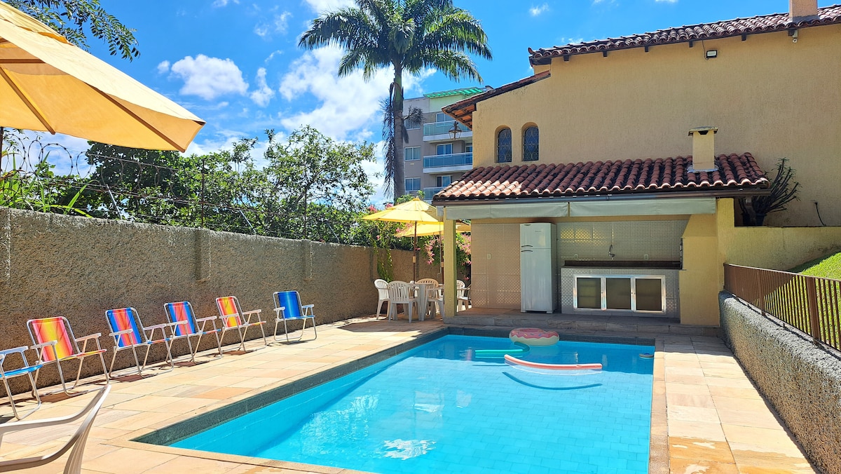 Safe location (closed residential condominium), quiet, spacious, comfortable, with a grass soccer field, swimming pool for children and adults (with shallow and deep part), volleyball or badminton court, barbecue with freezer and duplex refrigerator, suites with ceiling fans, space for a home office in the suites, and with a wonderful view. No parties after 10 p.m. and no fireworks. After 10 p.m., guests who came to spend the day must leave the house