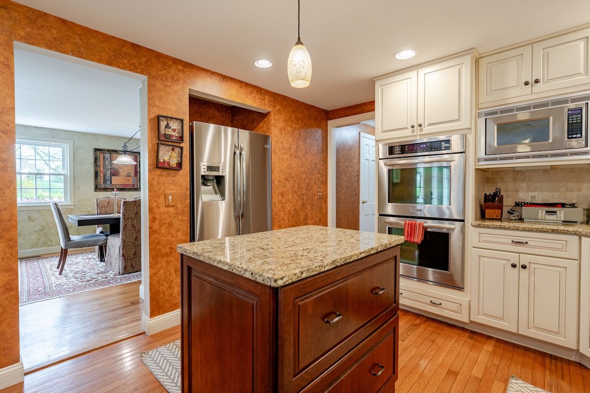 A private cozy suite for you! Better than a hotel or private room & less than an entire house. Pets welcome with no fees :) Generous discounts for medium- to long-term stays. Your guest suite includes newly furnished living room, apartment kitchenette, large bedroom with full bathroom. Despite many renovations, we kept the vintage & cozy charm. Keurig machine. Separate Wifi for remote work. Powered by solar! Less than 20 minutes to the airport and Hartford. No cost EV charger. No cleaning fees!