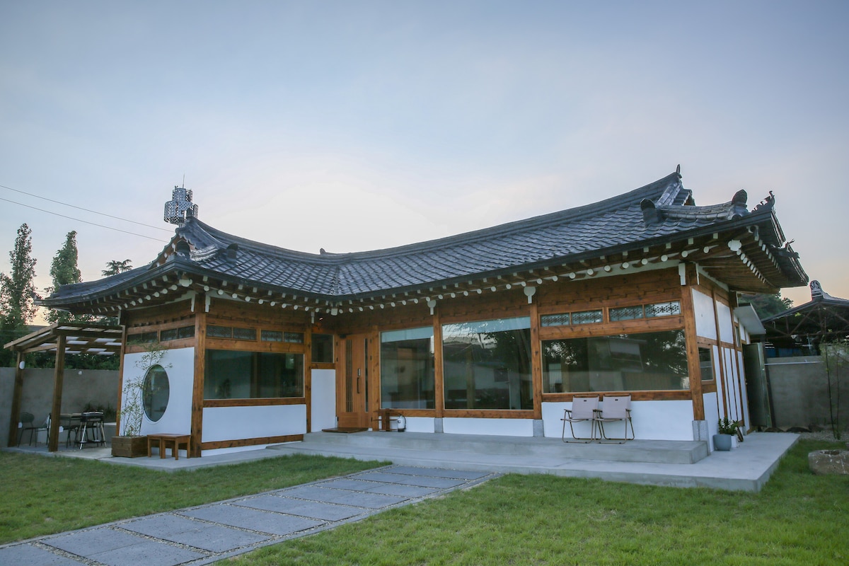 About 5 minutes by car from the city, on a site of about 400 pyeong or more, there is a 30-pyeong rural house. With a large room, a middle room, and a small room, it is a spacious accommodation with a kitchen and living room structure that is not lacking for families or multiple guests. At the edge of the village, with a forest garden-like feeling, Namsan Mountain seen from the large window indoors, Mueungwangneung Royal Tombs that seems to be captured on a wide deck, a cool hanok view from a low wall, and a path behind the house where you can take a light walk along the Osulloc promenade, all in harmony with the sound of birds all day long, I think it is the best resting place away from the busy daily life. Spacious parking, in-house kitchen amenities, and separate barbecue facilities provide convenience and enjoyment to guests. In particular, the transportation is convenient with the city permit, and the tourist route is close, so it will be satisfactory as a base for a pleasant trip.