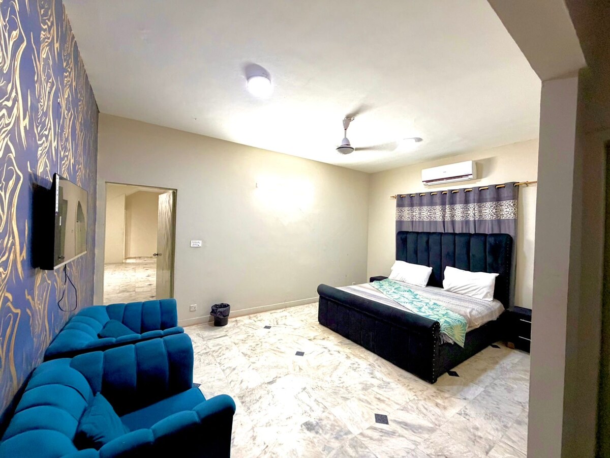 Enjoy a modern, budget friendly residence located right in the midpoint of the city , giving you quick access to markets, restaurants, hospitals and all major areas. Clean and well maintained ground portion perfect for solo travelers, couples, families or guests who want comfort, convenience and privacy. Cherry on the top is free safe car parking.