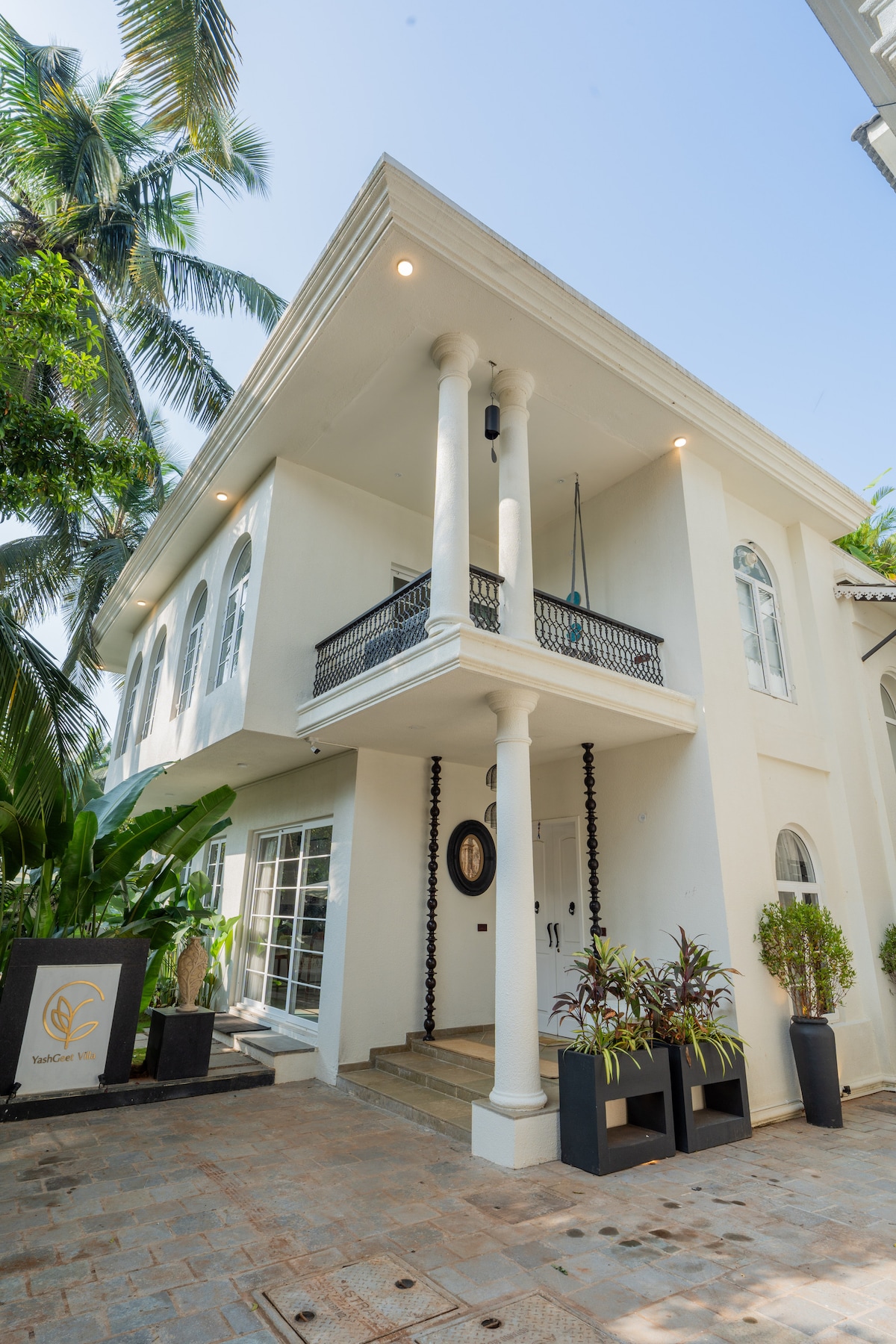 Palm and banyan trees create a seamless connection to nature at this Assagaon escape. The palatial home draws inspiration from Portuguese architecture with arches, an abundance of windows, and a covered courtyard. A yoga deck awaits to transport you to a serene state of mind while the spacious pool invites you in for a refreshing plunge. Uncork a bottle of champagne as you watch the vivid sunset. Copyright © Luxury Retreats. All rights reserved.