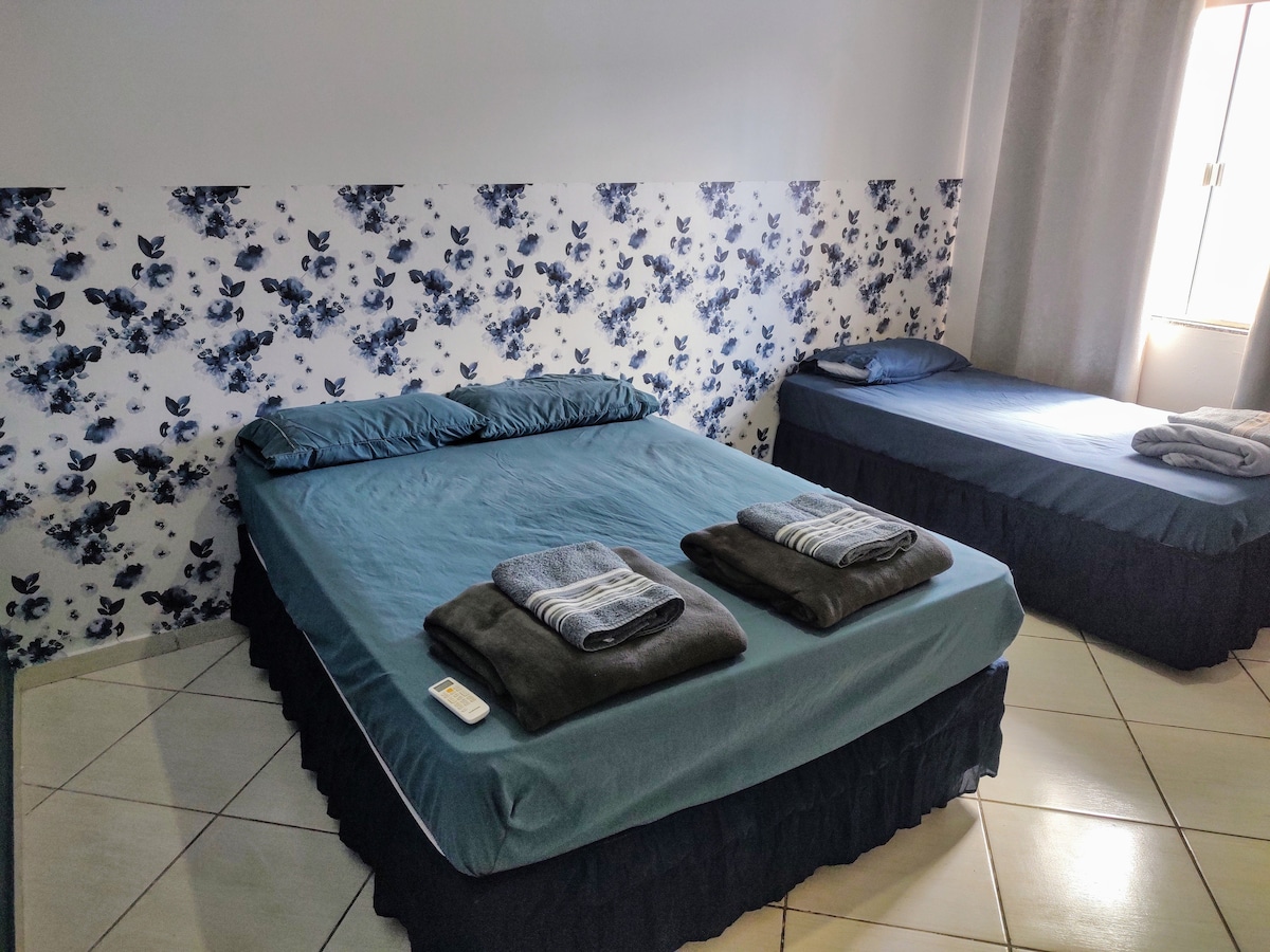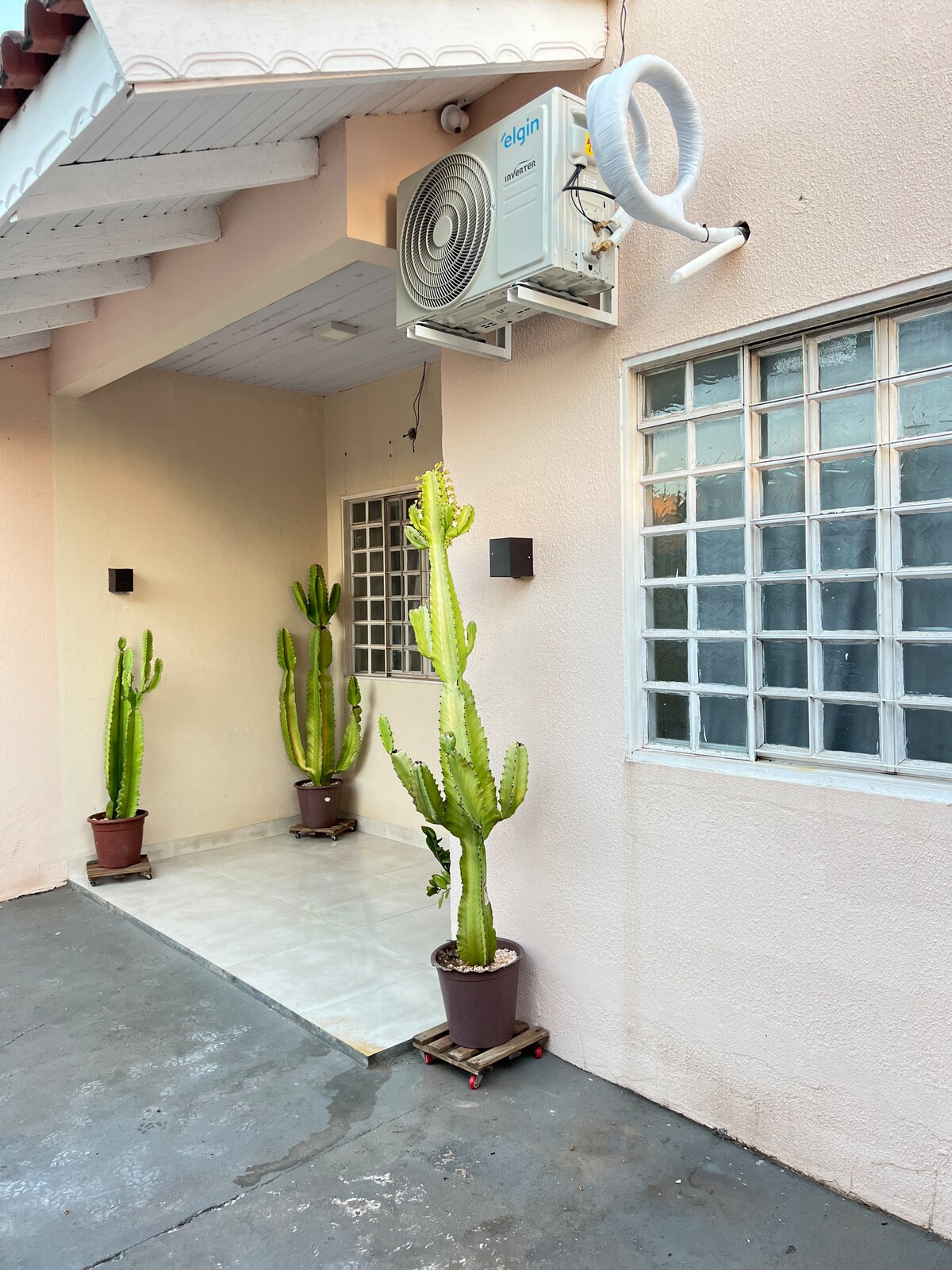 Casa localizada próximo ao centro, bairro tranquilo de fácil acesso. Oferecemos Internet, estacionamento coberto e privativo, área de churrasco com mesa de sinuca, cadeiras ao ar livre e lavabo, cozinha com itens básicos, sala aconchegante com TV smart e climatizador, banheiro social, 2 quartos com ar condicionado, sendo 1 suite com cama casal e 2 camas de solteiro, 1 quarto com cama casal e 2 colchões de solteiro extras. Lavanderia com máquina de lavar 8 kg.