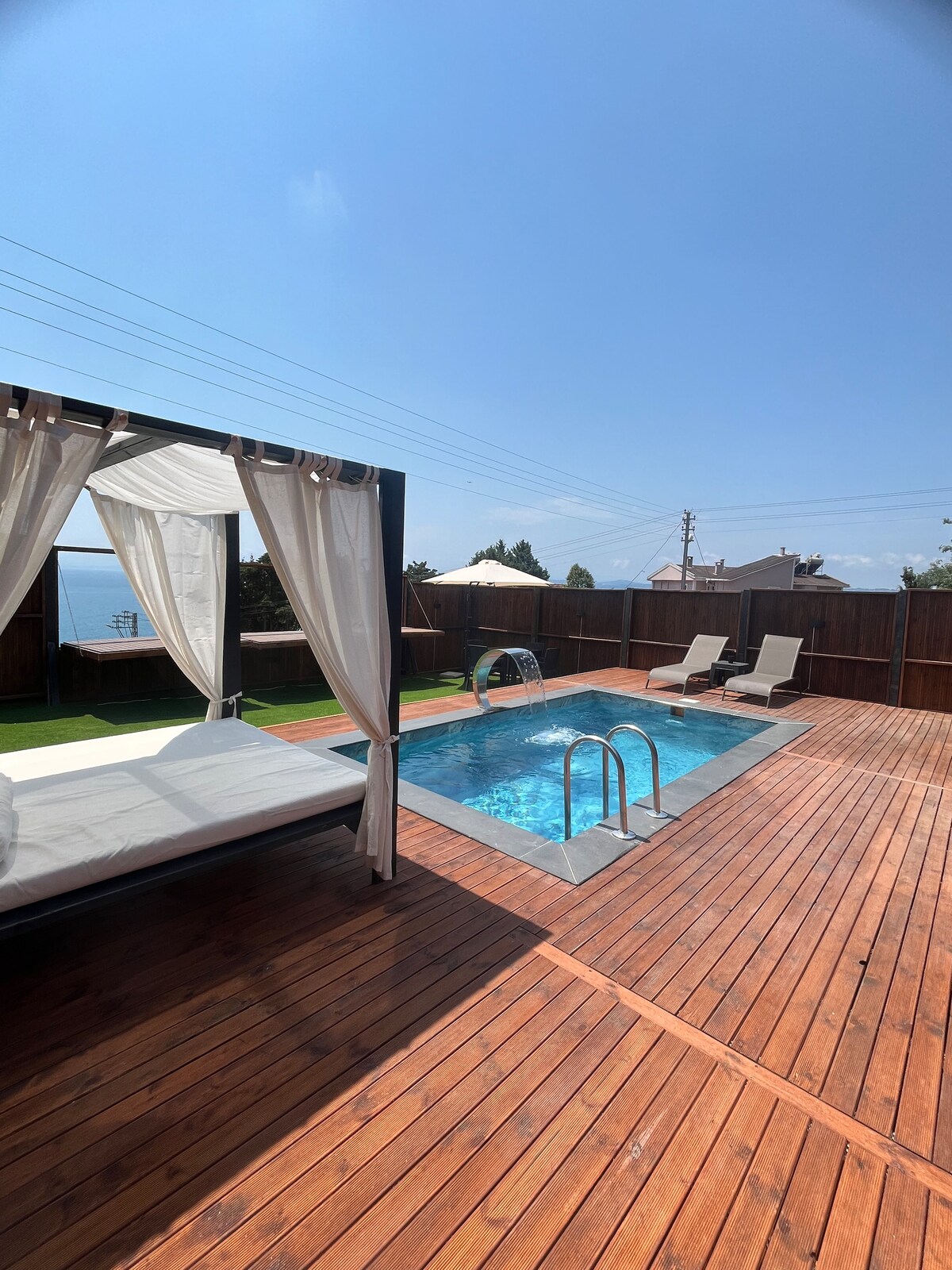 You can enjoy fun with your whole family in this wonderful place. For those who seek a minimalist, nostalgic, natural life within luxury and comfort, for travelers and families... Place: As soon as you step into the garden, you will be greeted by the scent of flowers with its deep blue sea, heartwarming nature, spaciousness and calmness :) You will feel the fresh air, calmness and peace rather than the busy city life Our house is within walking distance to the public beach (200 m) We wish you a pleasant holiday ☺️