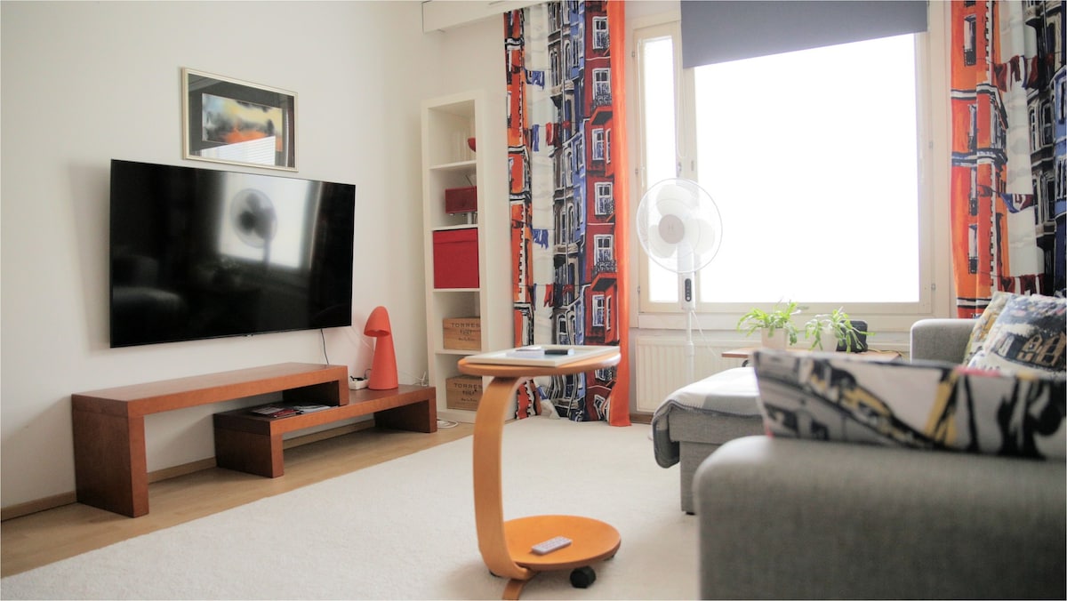 Experience Penthouse living in central Helsinki. Enjoy the glassed-in sun balcony – warm even in late autumn if sun shines (+a spot heater). Unwind in a Finnish sauna, then step out to the balcony with views for a classic hot–cold contrast – a Nordic wellness ritual that refreshes body and mind. ⛸ Winter: Free ice rink 50m away awaits – we got skates! ✔ Flexible check-in Gym 🛏 2 BR 🅿 Free Parking (EV) 📺 70" Disney+ ⌘12 min to center 👣 Walkable 🏪 Grocery 60m, 24/7 🍕 Good restaurants Park