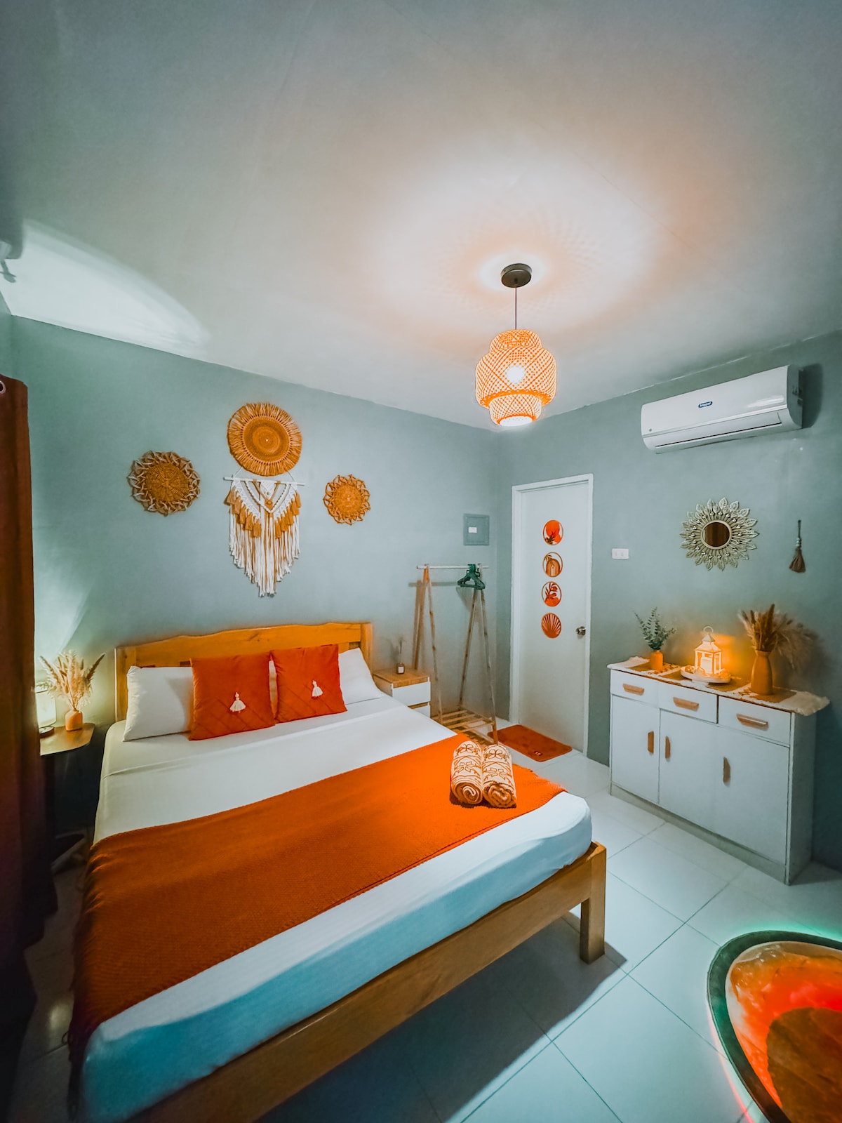 Stay in the heart of San Juan, Siquijor in this cozy Boho Studio just 1 minute walk to the beach and sunset views. Fully air-conditioned with a queen bed, private bathroom with shower, mini kitchen, and garden terrace. Enjoy fast PLDT Fiber WiFi with Globe backup plus generator for uninterrupted power. Walking distance to bars, restaurants, groceries, massage, and nightlife. Comfort, style, and the best location in the Island of Siquijor.