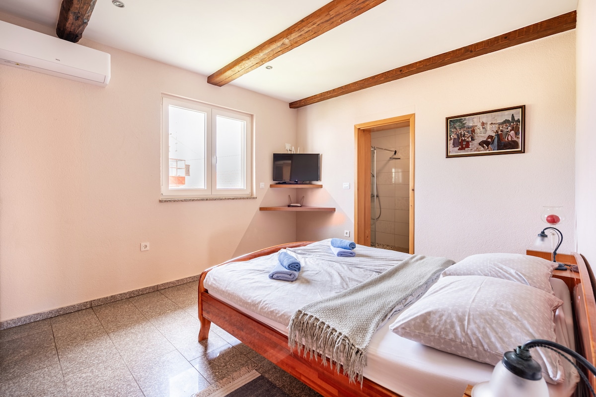 Our comfortabe and cool one bedroom apartment is located on a quiet street, just 3 min (with car) from center of Pula, and 8 min from the beach. 1 bedroom, bathroom with shower and WC, kitchen and living room and a balcony.....