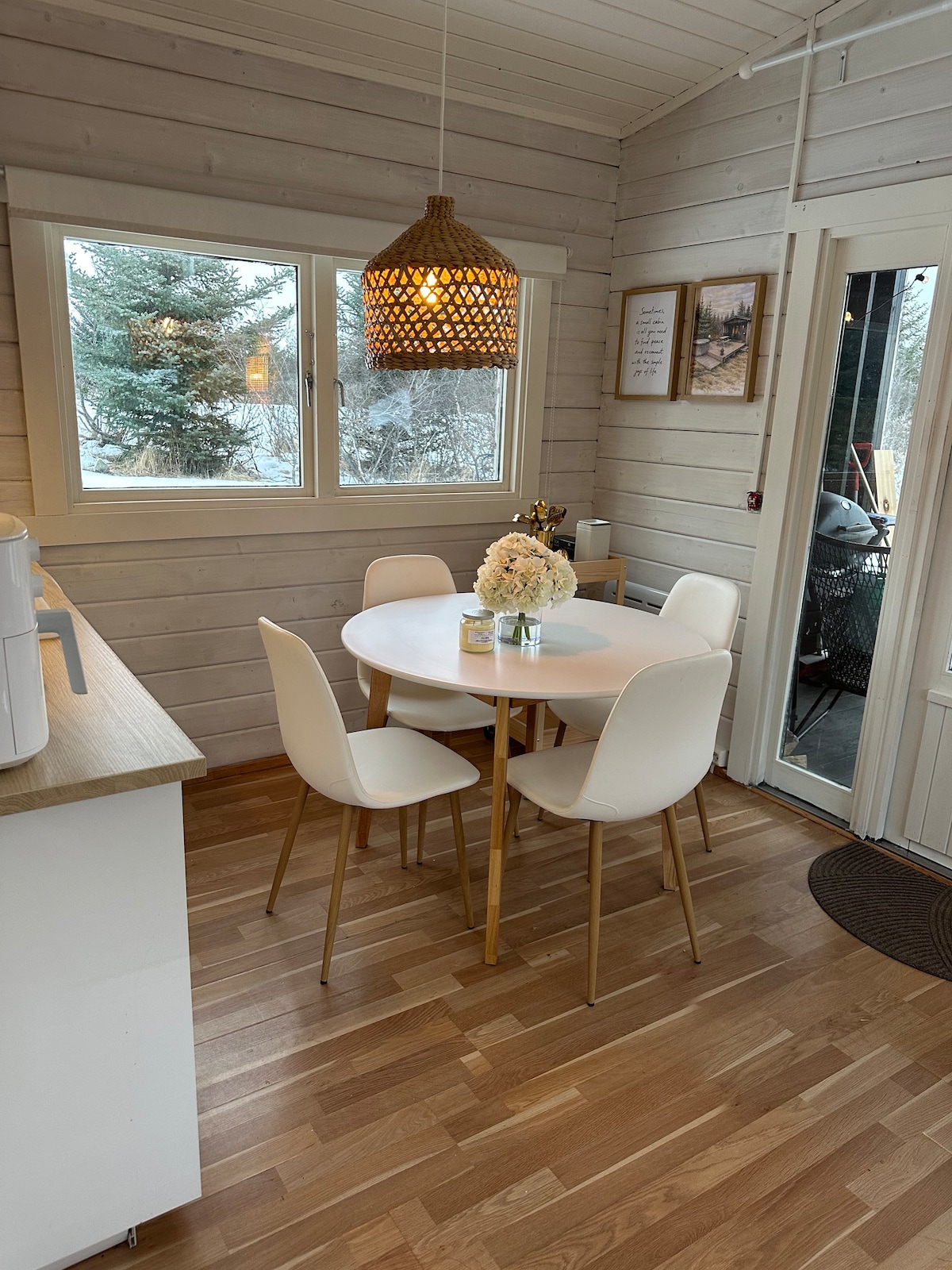 The Cabin is cosy and comfortable. The cabin offers stunning Mountain view across the south of Iceland (Mt Hekla). Surrounded by a small forest, framed by a famous fishing river which runs next to the cabin. NORTHERN LIGHTS shimmer on clear nights during the winter. There is a fully equipped kitchen, gas Barbeque, a fireplace, and a Jacuzzi with hydromassage. There are inside and outside showers and a upstairs lounge with a Smart TV incl. streaming services.