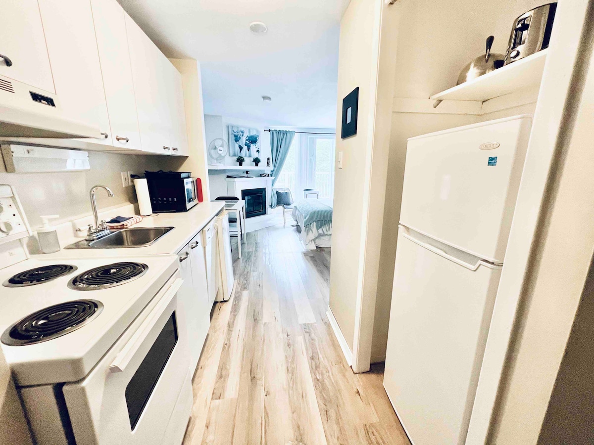 Ce magnifique studio de 340 pieds carrĂ©s est situĂ© dans le vieux village. Ouverture de la piscine et du spa Ă la mi juin đââïžđââïž 2026 Tout rĂ©novĂ© et redĂ©corĂ©, entiĂšrement Ă©quipĂ© ( cuisine complĂšte) est parfait pour une escapade romantique! De nombreux restaurants et boutiques ainsi que la plage du lac Mercier se trouvent Ă moins de 10 min Ă pied.Le suberbe mont tremblant est Ă seulement 8 minutes en voiture.ainsi qu' une superbe piscine et spa.
