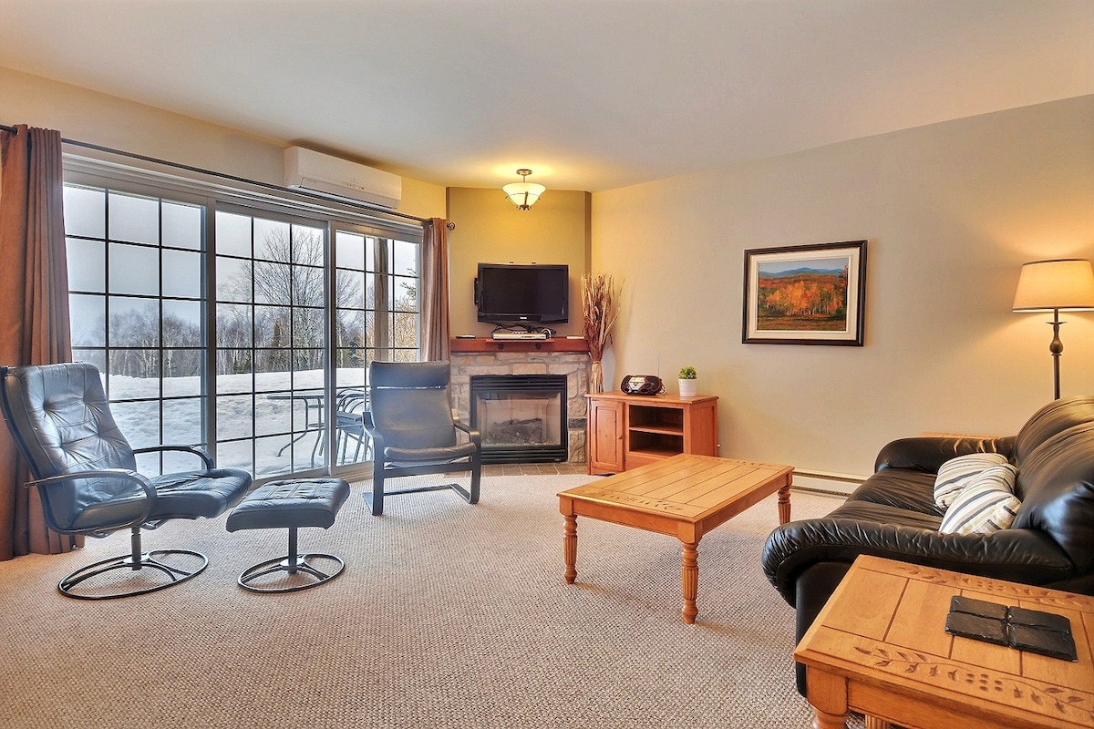 Take it easy at this unique and tranquil getaway. Located directly on the slope. BEST SKI-IN/SKI-OUT IN TREMBLANT. This one bedroom condo with Air conditioning (Queen size bed) and a Wood fireplace can easily fit 4 persons and is well equipped to welcome any outdoors lovers. For the SKI-IN/SKI OUT note that there is about 50 steps from the condo down to the Chalumeau trail to start or come back from your ski day. CITQ #295941