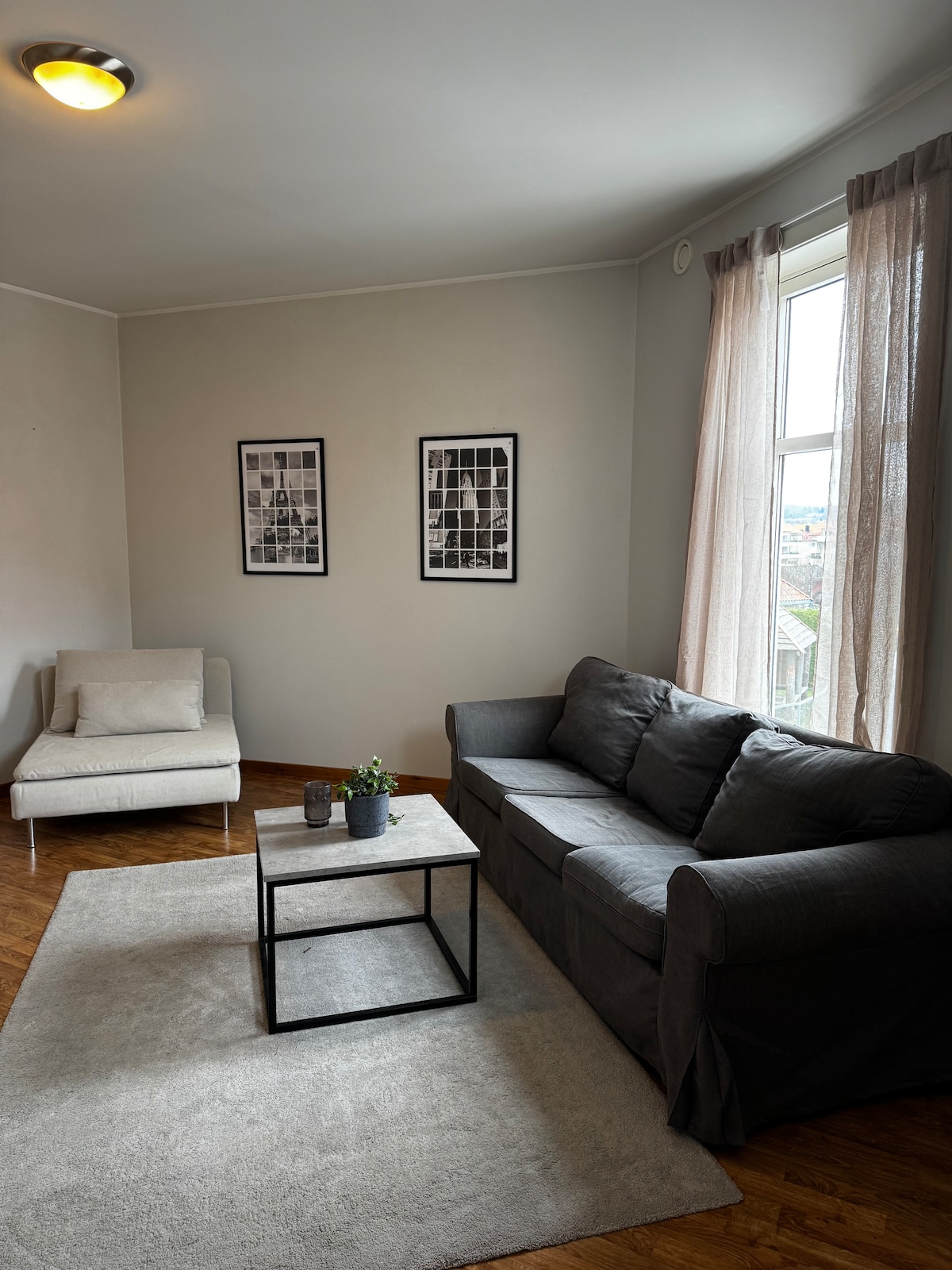 Welcome to our small, charming apartment in the middle of Skien city! This cozy home gives you a perfect base for your stay, whether you're on a business trip or exploring the city. The apartment offers: • Comfortable living room with Chromecast for entertainment. • Internet. • Bedroom with a 1.20 double bed, plus an extra single bed if needed. • Small, functional bathroom. • Private veranda. Perfect location: • Only 1 minute walk to train station, bus and taxi, which makes it easy to get around.