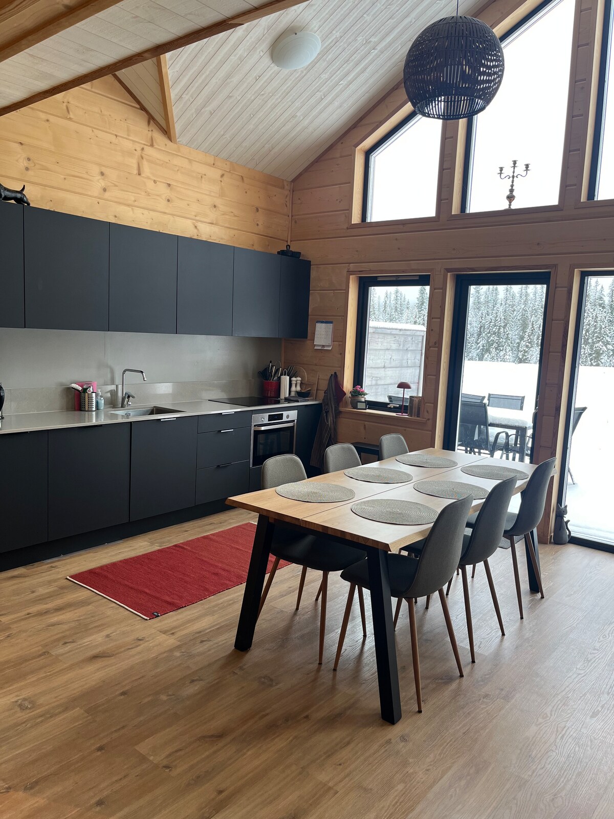 This pleasant accommodation is located in Gubbmyren about 5 minutes by car from Lindvallens ski resort. The accommodation has lovely social areas where the kitchen and living room are in an open floor plan and with 7 meters to the ceiling. The fireplace creates cozy factor. 4 bedrooms, a total of 9 beds. Separate sauna with glass door out to nature and ski storage with good storage and boot warmers. Here you have all the amenities such as dishwasher, washing machine, tumble dryer and drying cabinet. Perfect accommodation for large groups.