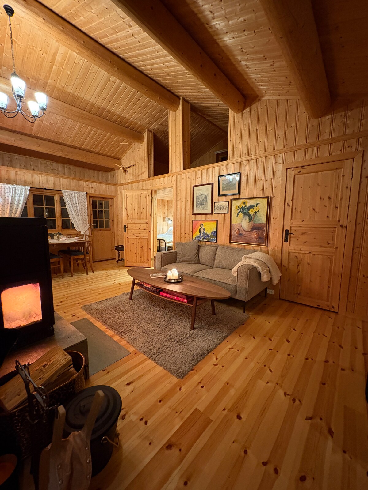 This is a modern, bright, and cozy cabin on one level, with 3 (4 bedrooms), 8 beds, and everything you need for a pleasant stay in the mountains. Two of the bedrooms have fold-down desks - perfect for workation. The modern fireplace will provide both comfort and warmth after a long day in the fresh mountain air. Electricity (ex. EV charging) included in the rent. The cabin is new, from 2022.