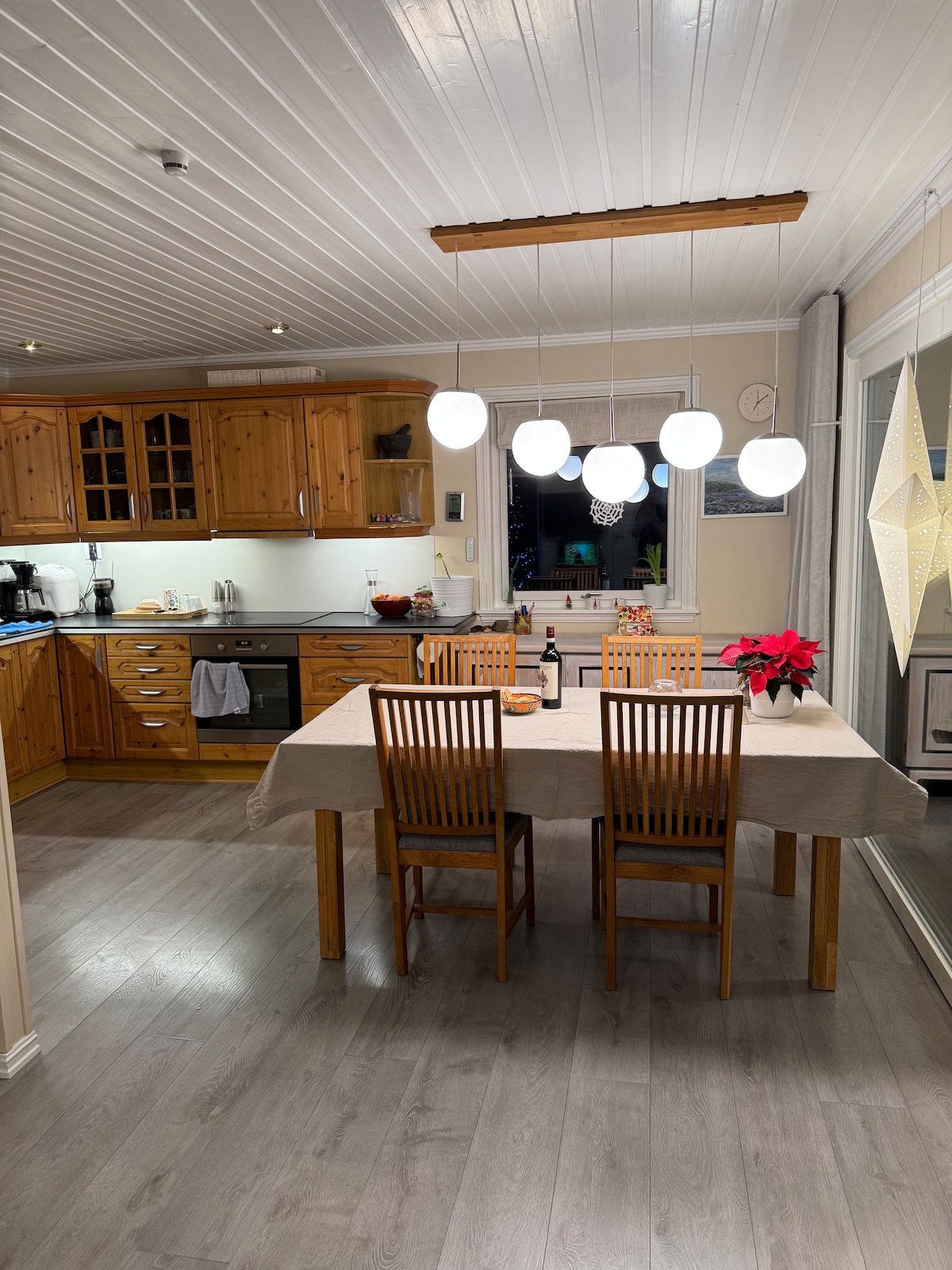 Spectacular new build house (2018) in a lovely, quiet area with a beautiful view to the fjord/sea, mountains and forest in Kvaløya /Tromsø. You can watch the beautiful northern light / aurora borealis from the huge window (10 sqm), sitting in the living room with a cup of tea or coffee in your hand:-) This is a perfect place for tourists who wants to see the northern light, whales in the fjord at winter, hiking/ skiing in the mountains or everything else you want in this lovely city.