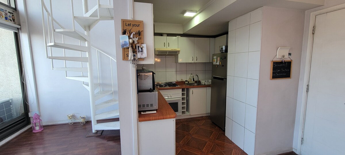Our incredible and magical Loft is located in a prime location in downtown Santiago, located on the top floor of the building you can see the Andes mountain range, close to Santa Lucia and the city in its fullness is truly a wonderful picture that you can enjoy even lying in your comfortable bed...it is located above the Santa Lucia metro so it is steps from all the shops, restaurants, supermarkets, Bellavista neighborhood, Lastarria and historical places...it is decorated with everything you need to feel that you are in a dreamy and comfortable place during your stay...
