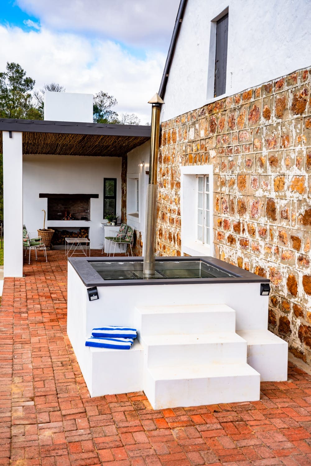Ribbok is situated on a working farm in the Overberg Area. Surrounded by beautiful Renosterbos veld overlooking the Riviersonderend Mountains. Modern self-catering unit that includes the following: Single Bedroom with king size bed Bathroom with shower, toilet, basin Fully equipped kitchen fitted with a gas stove, fridge, microwave, airfryer, toaster, cutlery,crockery Coffee, tea, sugar are provided Free wifi Airconditioning Large deck Wood-fired hottub Braai facilities Fire Wood is provided