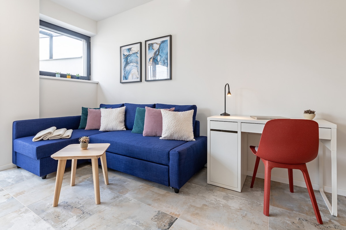 Vítejte v našem moderním apartmánu! Nachází se na klidné ulici v srdci města, ideální pro páry, obchodní cesty nebo rodiny s dětmi. Apartmán nabízí ložnici s manželskou postelí, obývací pokoj s rozkládací pohovkou, plně vybavenou kuchyň a moderní koupelnu. K dispozici je Wi-Fi zdarma, TV, pračka, sušička a parkování. Blízko turistických atrakcí, restaurací a MHD. Rychlý a bezkontaktní check-in a check-out, domácí zvířata jsou povolena. Přijďte si užít pohodlí a styl!