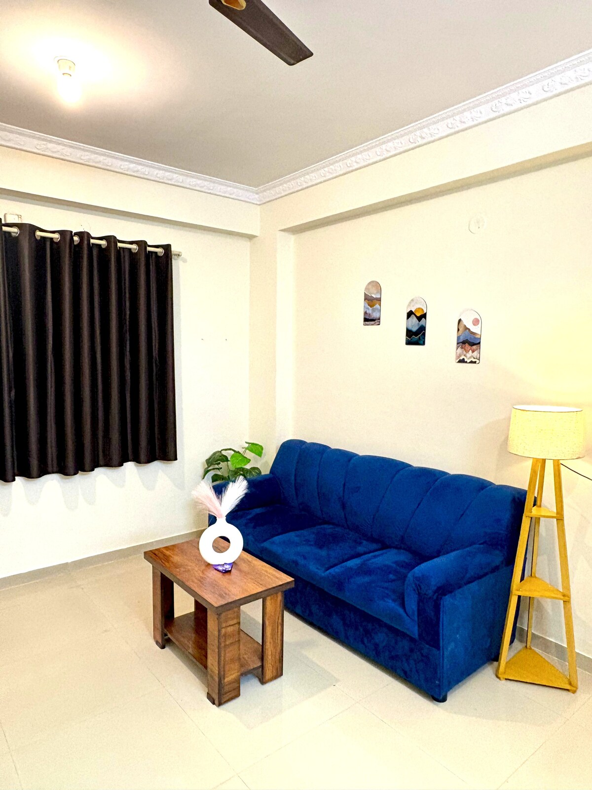 Welcome to our brand new, premium 1-BHK apartment, ideal for couples and travellers seeking comfort and privacy in an excellent central location. The bedroom has a queen bed with soft orthopedic mattress for a restful night's sleep. Relax in the cozy living room with a Smart TV, lightning-fast WiFi and open kitchen area. Comes with a super clean bathroom stocked with bath essentials. The fully equipped kitchen includes high-quality appliances and crockery for your culinary adventures!