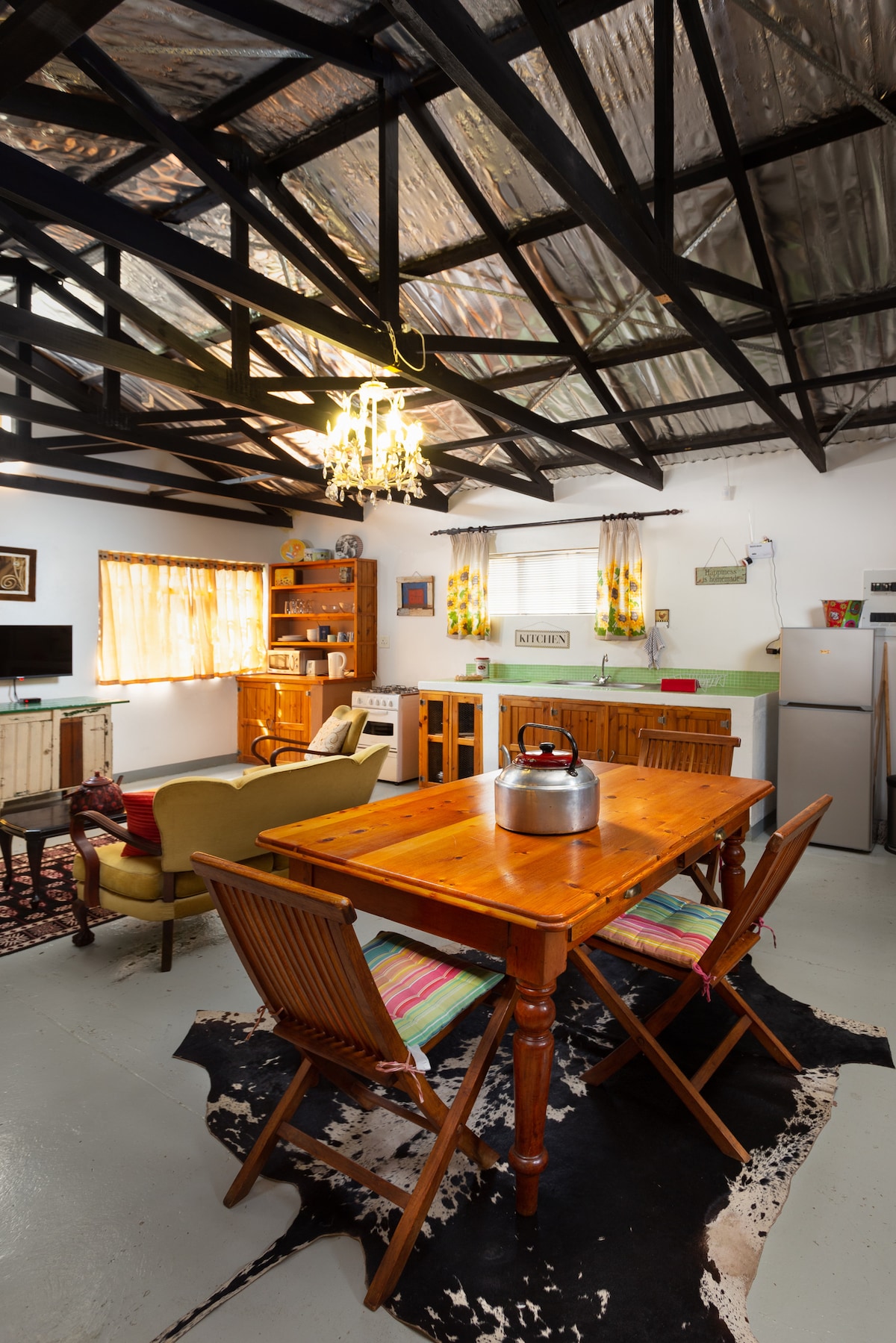 Your artist hostess designed and furnished the cottage so expect quality yet quirky, uncluttered decor. The cottage is very spacious, comfortable and light and overlooks a large organic garden. With its own access and safe off-street parking your privacy is guaranteed. Recently added free Wi-Fi, and a solar system with back up gas geyser which means I don't depend on the national grid for power.