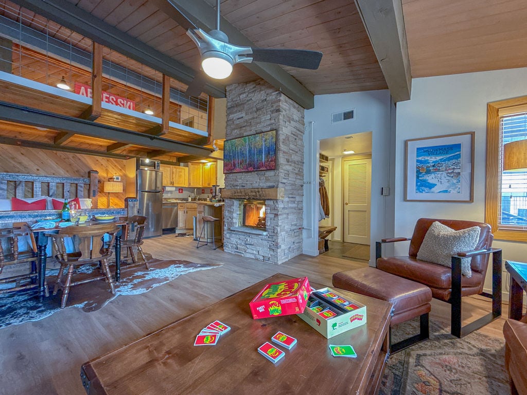 🌲Studio - Queen bed, fireplace, Smart TV, comfortable living room area with Queen sized sofa couch, dining table for four 🌲Fully equipped kitchen 🌲Amenities right out of the front door include two hot tubs, large heated pool, gym, and sauna! 🌲Ski locker storage 🌲On site parking 🌲Two minute walk from Snowmass Mountain's ski, bike, and hiking trails 🌲One block above Snowmass Mall's restaurants, bars, cafes, shops, gear stores, and bus station!
