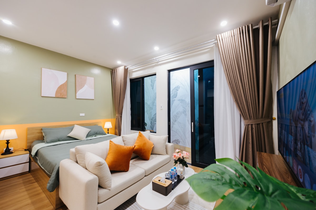 Welcome to our Hapi homestay, where you’ll feel right at home from the moment you arrive. Hapi Homestay located in Soc Son commune. With three spacious bedrooms, free Wi-fi, air conditioning and private bathroom. Sunlight-filled rooms with two balconies, every corner is made for comfort. Located near the airport with free pick-up and drop-off, plus full kitchen and laundry, it’s a safe, relaxing, and truly welcoming space just for you.