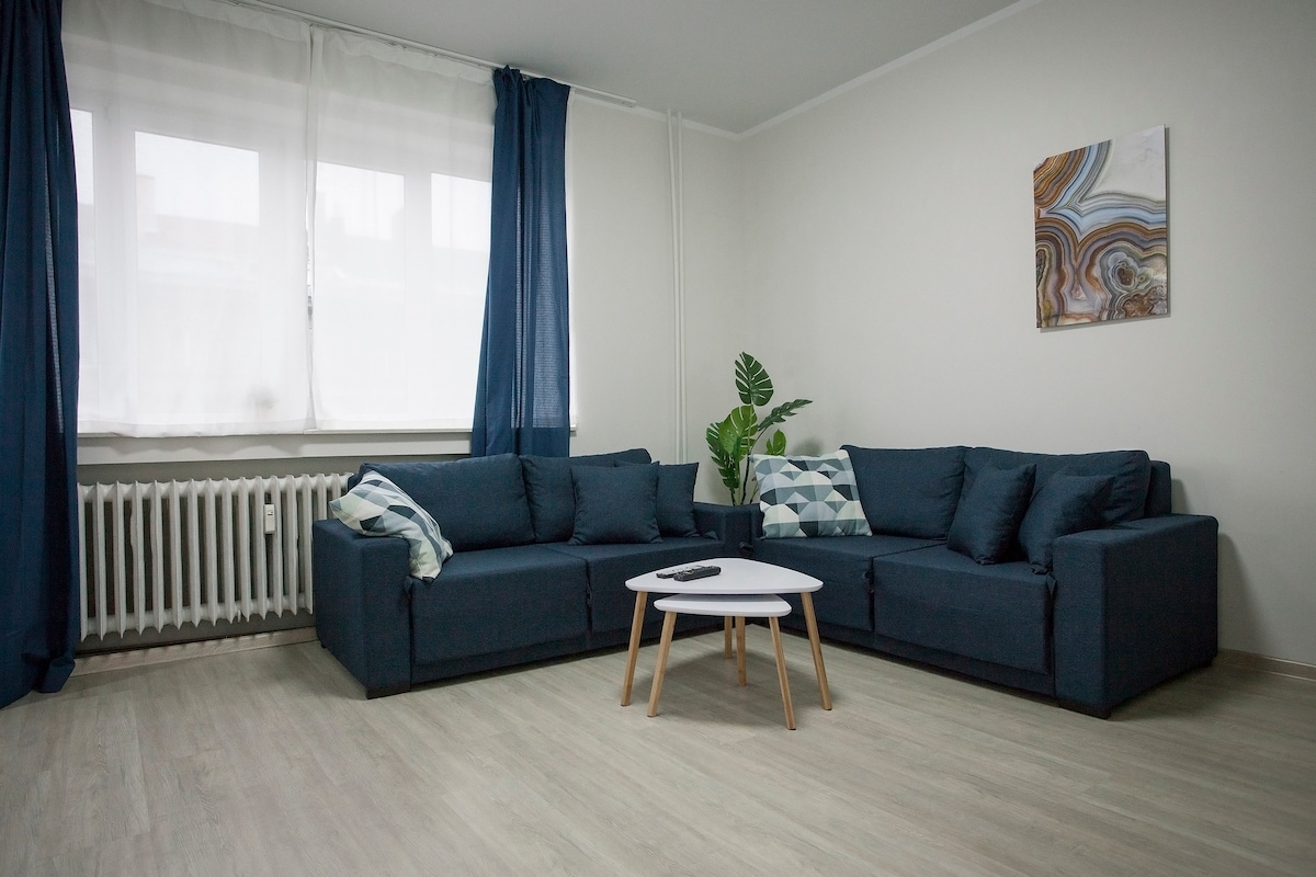 Cozy one bedroom apartment with a nice sitting room with extendable sofa, central heating in "Galaxy Trade Center" building, with a secure parking, shops and restaurants. It is a 5 min walk to a central Bus stop "Pliska"-which is 10 min away from the city center and has direct connection with airport by buses 84 and 184. Main concert and sports hall Arena Sofia is 15 min away. Located in a very safe town area, just next to a police station, Ministry of Exteriors, Embassies, Malls, banks, parks.