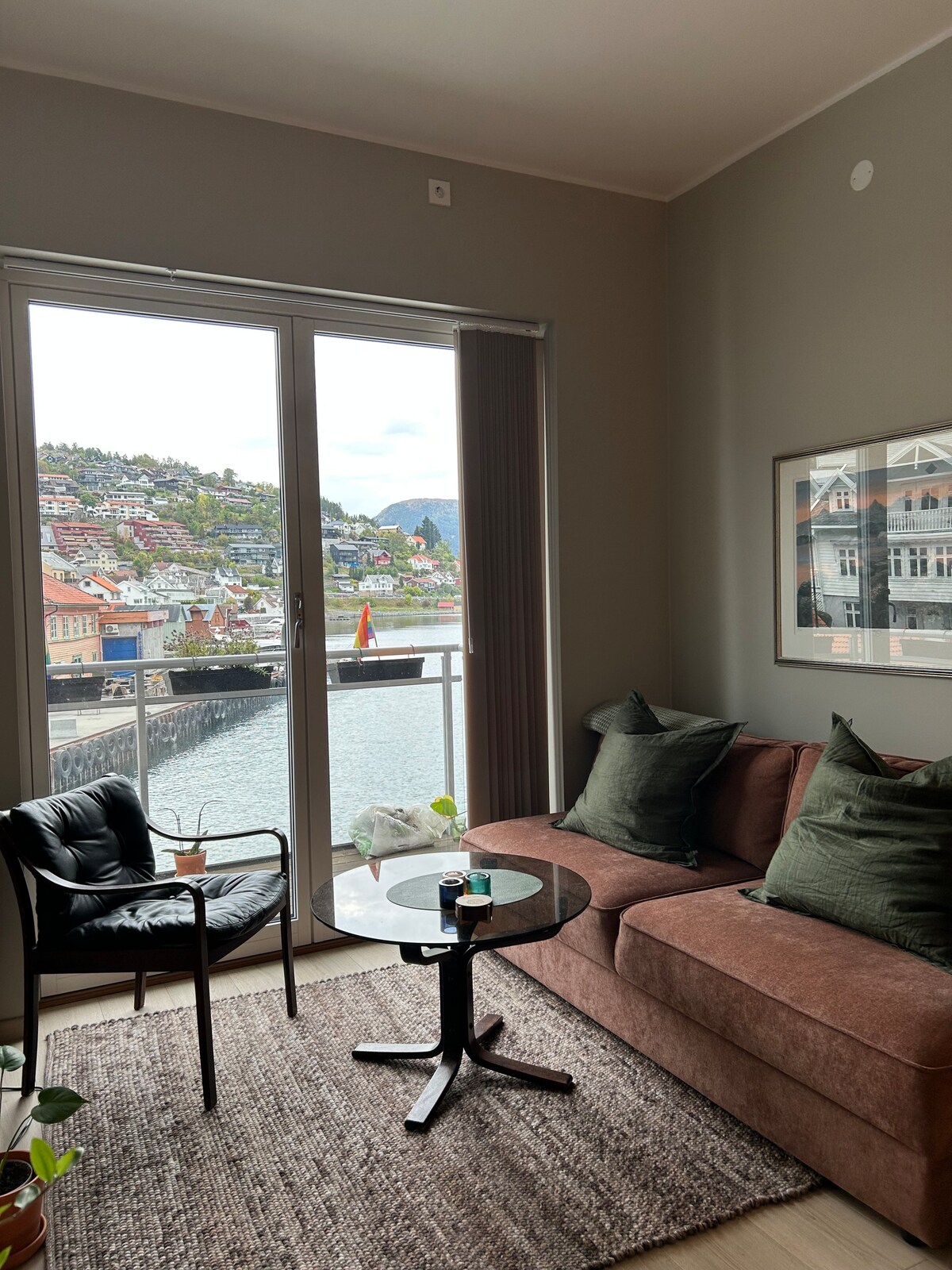 Enjoy a stylish experience in a central location. Welcome to Lerum Brygge Here you can live in a state-of-the-art apartment where no expense has been spared on luxury. Here you can sit and enjoy life on the waterfront with a panorama of the Sognefjord in the centre of Sogndal directly by the sea. The apartment includes open-run living and kitchen, 2 bedrooms, bathroom, laundry room, and patio with its own basement parking space. Here you can accommodate 1-4 people. Bed linens and towels included. Party is not allowed.
